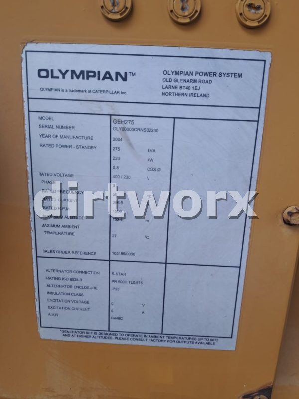 - Alternator Model: Olympian GEH275.